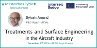 L’IPREM accueillera la semaine prochaine la première session session du cycle de Masterclasses liées aux activités du projet Resinsurf Sudoe. À cette occasion, Sylvain Amand, responsable R&D chez AXYAL, interviendra autour du thème “Treatments and Surface Engineering in the Aircraft Industry”. Cette Masterclass se tiendra dans l’amphithéâtre de l’IPREM et est ouverte à tous. Elle offrira un éclairage technique et industriel précieux sur les procédés de traitements des surfaces actuels dans le secteur aéronautique et donnera une vision des challenges qui attendent le secteur en termes d'écodurabilité.